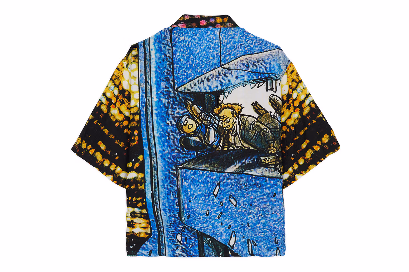 Parmi les pièces phares figure un bomber technique, pensé comme un vêtement fonctionnel et narratif, ainsi qu’un plaid en tapisserie tissée, qui transpose l’imaginaire cyberpunk de la série dans un objet domestique à forte valeur graphique. La ligne comprend également une sélection de T-shirts graphiques, mêlant nouveautés et rééditions de modèles appréciés, ainsi qu’une chemise à manches courtes et une chemise all-over print en édition limitée, cette dernière étant accompagnée d’un pack de stickers exclusif.