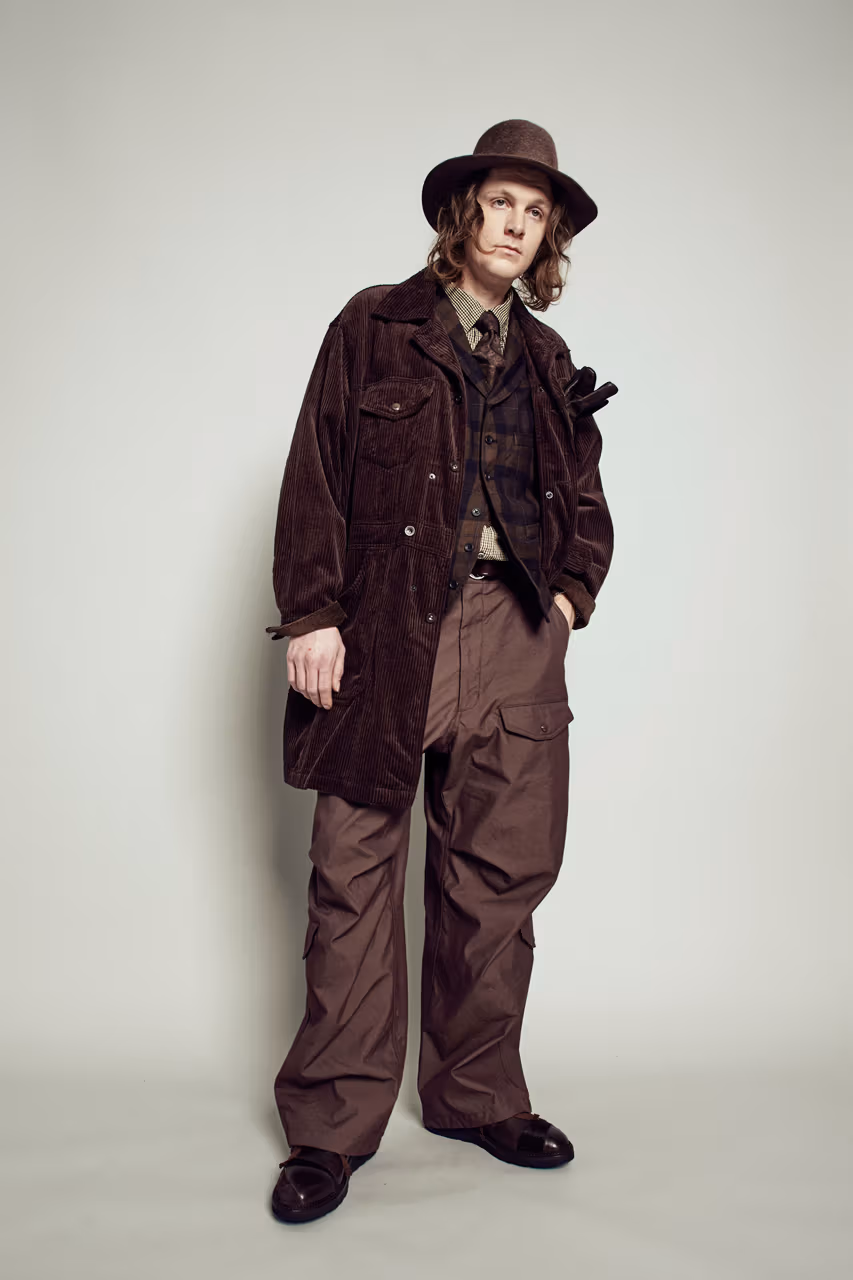 Pour l’Automne/Hiver 2026, Engineered Garments dévoile une collection profondément ancrée dans l’histoire du vêtement utilitaire, où se croisent références outdoor, héritage militaire et tailoring classique. Fidèle à l’approche conceptuelle de Daiki Suzuki, la marque compose un vestiaire dense et chaleureux, pensé comme une superposition de styles issus de différentes époques, unifiés par une obsession constante pour la fonctionnalité.