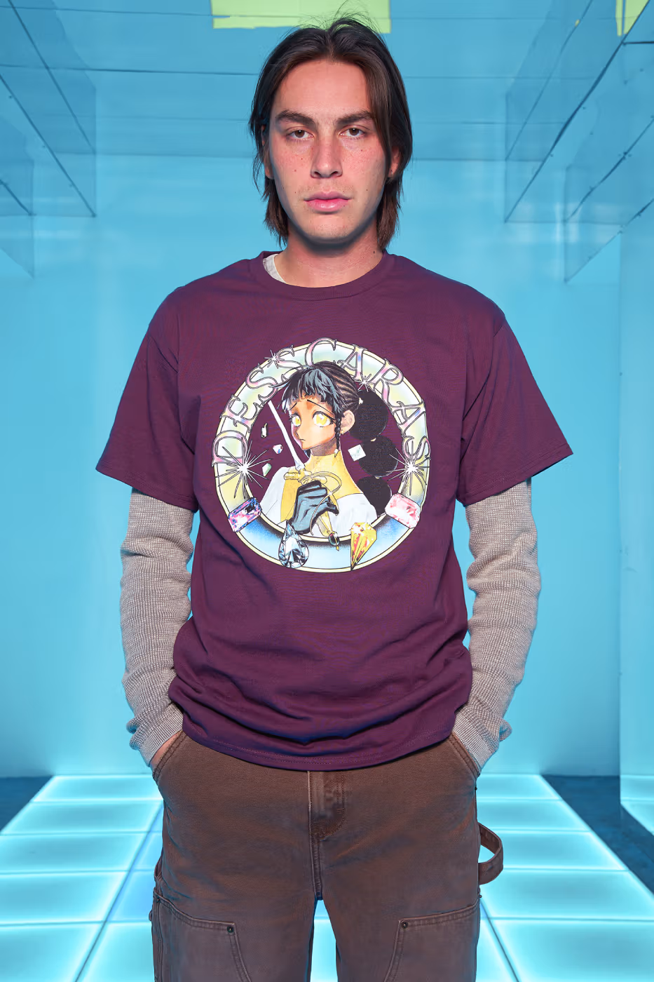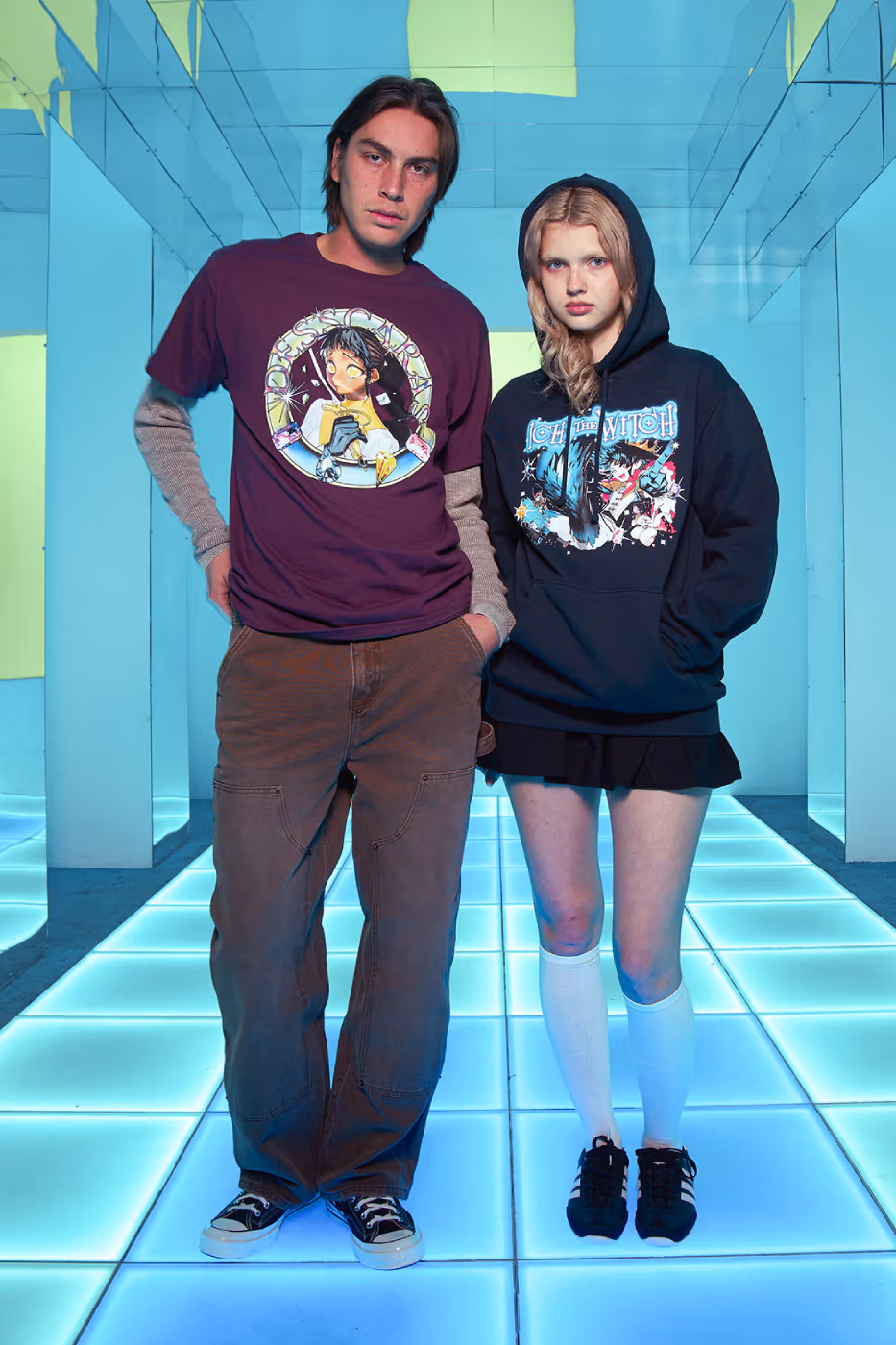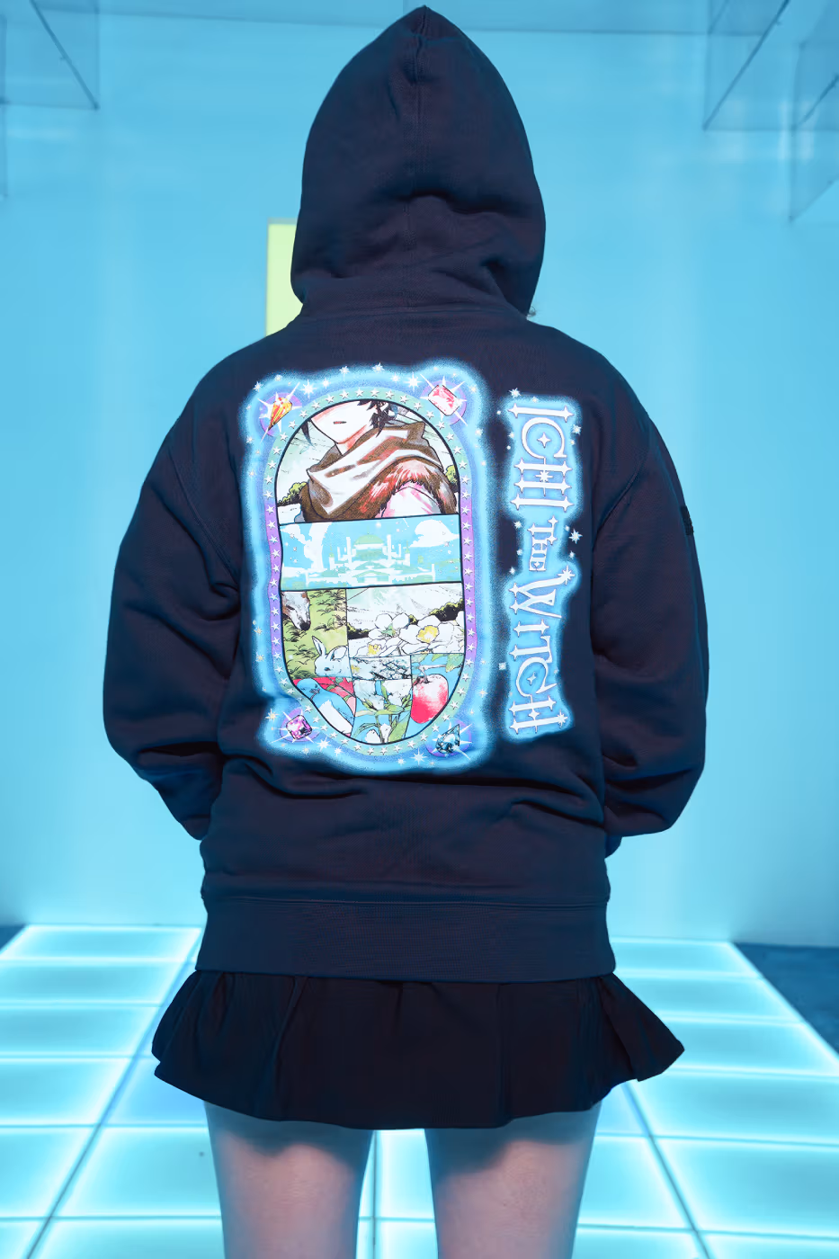 La gamme se compose de t-shirts graphiques, ainsi que d’un hoodie épais imprimé à l’avant et à l’arrière, conçu pour refléter l’esthétique magique et narrative du manga. En complément des pièces textiles, la collection introduit également des objets collectors, parmi lesquels un stand acrylique pailleté et des pins émaillés phosphorescents, offrant aux lecteurs des formats à la fois portables et décoratifs pour s’approprier cet univers inédit.