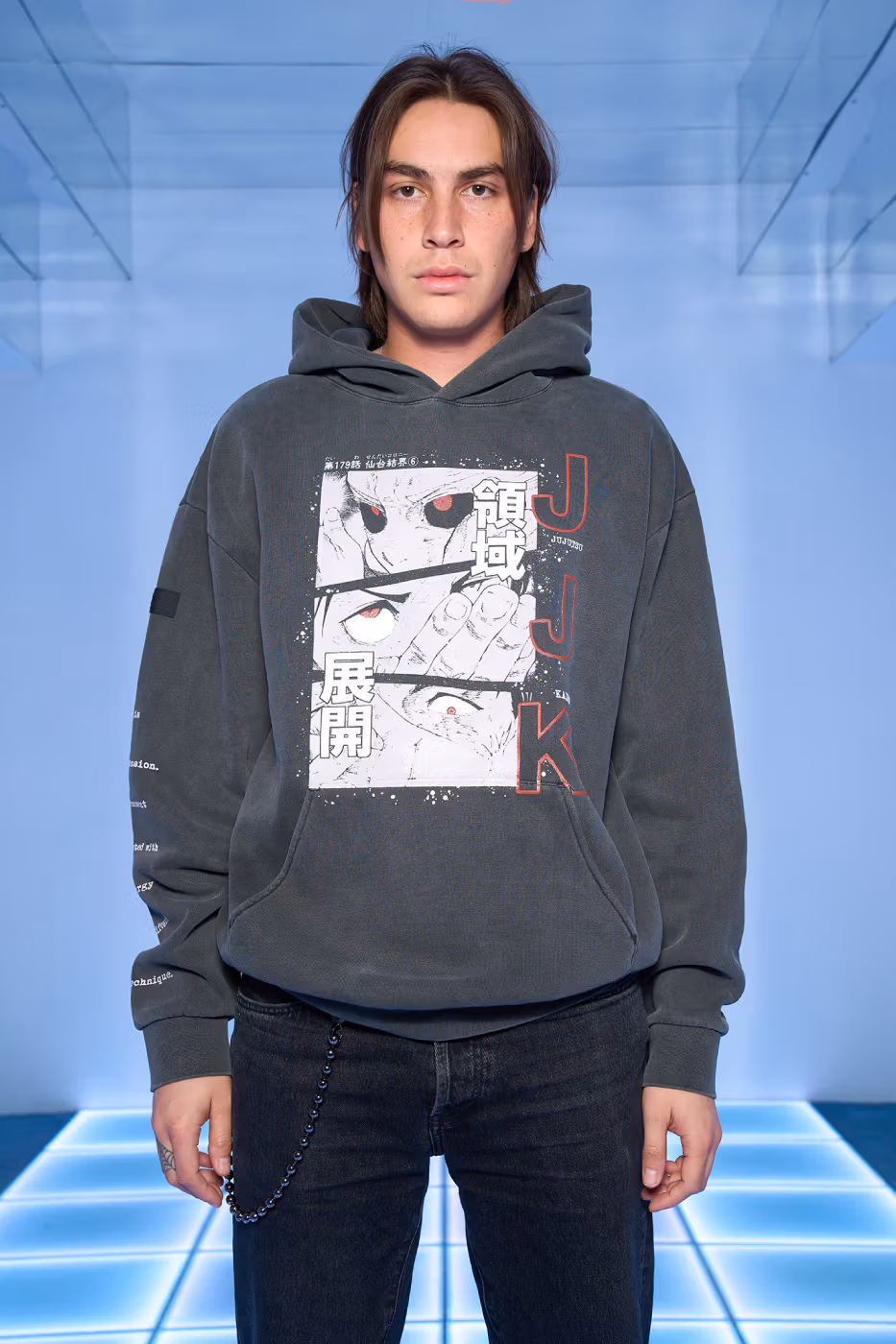 La pièce centrale de cette capsule est le Curses Pull Over Hoodie, un sweat à capuche heavyweight de 12,5 oz, à la coupe boxy, doté d’un patch en caoutchouc siglé sur l’épaule et de visuels détaillés imprimés sur le devant et les manches. La collection s’étend également à des accessoires, avec un desk mat XL illustré d’un visuel sous licence exclusive, ainsi qu’une casquette trucker à front en mousse, brodée sur mesure et produite exclusivement aux États-Unis.